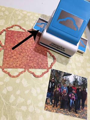 With the edge of the square patterned paper .. line up the side with the line on the side of the punch, then line up the design for the next punch. Repeat as you go to the next side.